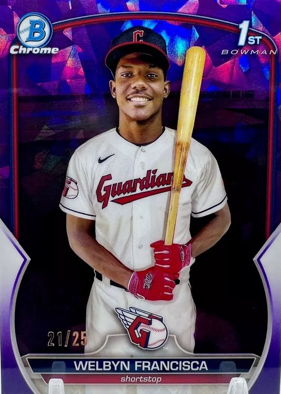 The Welbyn Francisca 2023 Bowman Chrome Sapphire Edition #BCP-228 Prospects - Purple /25 (1st) card in Raw condition has not changed in price in the last 30 days and was last sold for $59.00 .
