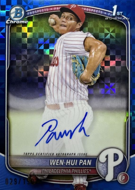 2025 Bowman Chrome WEN-HUI PAN Phillies Blue Xfractor Refractor 1st Auto SP /150