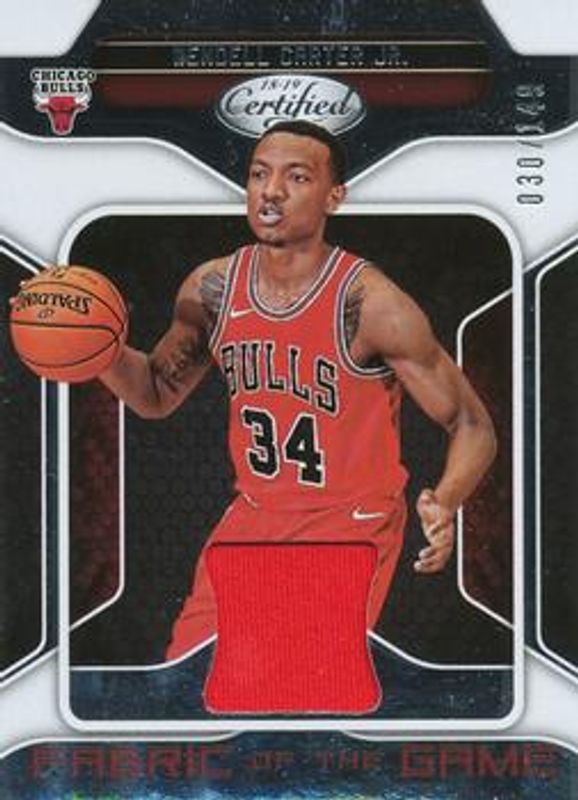 The Wendell Carter Jr. 2018 Certified #FG-WC Fabric of the Game Rookies /149 card is 1 of 37 Wendell Carter Jr.'s card variations in the 2018 Certified set being tracked by Sports Card Investor, including Base, 2018 Graffiti, Certified Future, Certified Potential Autographs, and Mirror.