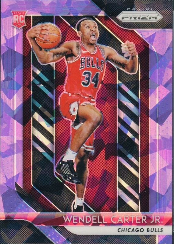 2018-19 Panini Prizm Wendell Carter Jr Rookie Purple Cracked Ice 109/149 Bulls