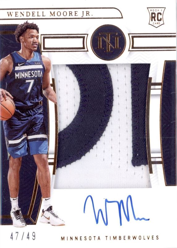 The Wendell Moore Jr. 2022 National Treasures #118 Rookie Patch Auto - Bronze /49 card in Raw condition has not changed in price in the last 30 days and was last sold for $36.55 .