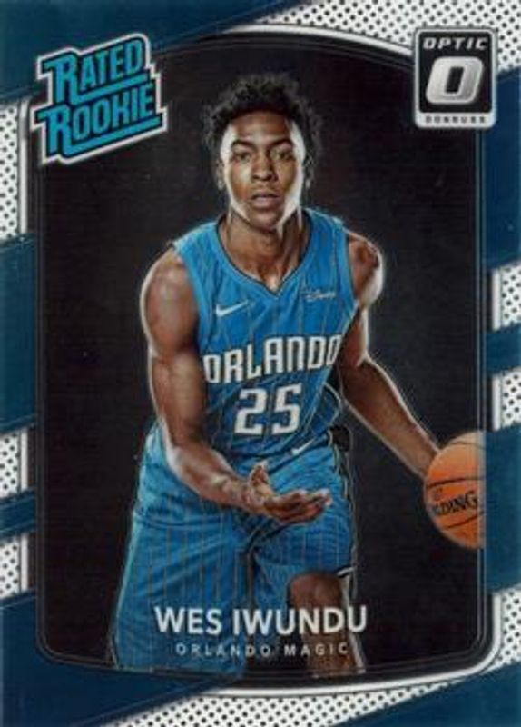 The Wes Iwundu 2017 Optic #168 Base Rookie card is 1 of 46 Wes Iwundu's card variations in the 2017 Optic set being tracked by Sports Card Investor, including Blue Velocity, Checkerboard, Fast Break, Holo, and Purple.