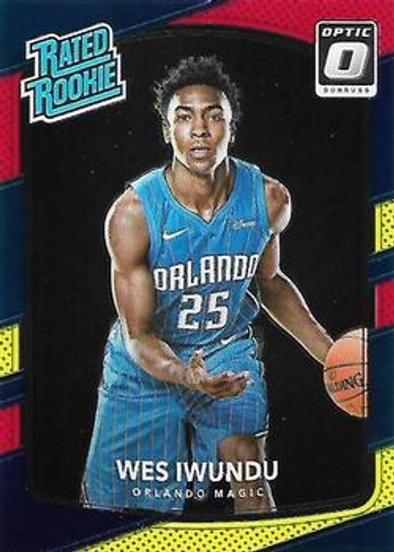 The Wes Iwundu 2017 Optic #168 Red & Yellow Rookie card is 1 of 46 Wes Iwundu's card variations in the 2017 Optic set being tracked by Sports Card Investor, including Base, Blue Velocity, Checkerboard, Fast Break, and Holo.