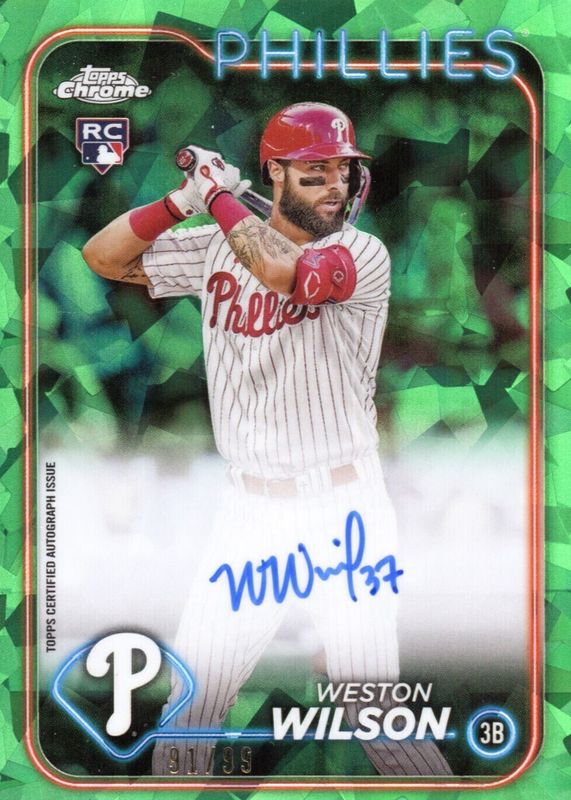 WESTON WILSON 2024 Topps Chrome Sapphire RC Auto Green SAPPHIRE #11/99 PHILLIES