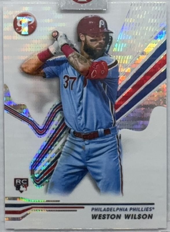 The Weston Wilson 2024 Topps Pristine #131 Pristine Refractor Rookie card is 1 of 18 Weston Wilson's card variations in the 2024 Topps Pristine set being tracked by Sports Card Investor, including Base, Refractor, Green Refractor /150, Pristine Purple Refractor /99, and Purple Refractor /99.