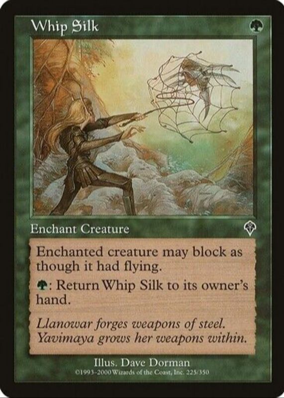 The Whip Silk 2000 Invasion #225 Base card in Raw TCG (Lightly Played) condition has moved down -$2.50 (-71.6%) in the last 30 days and was last sold for $0.99 .