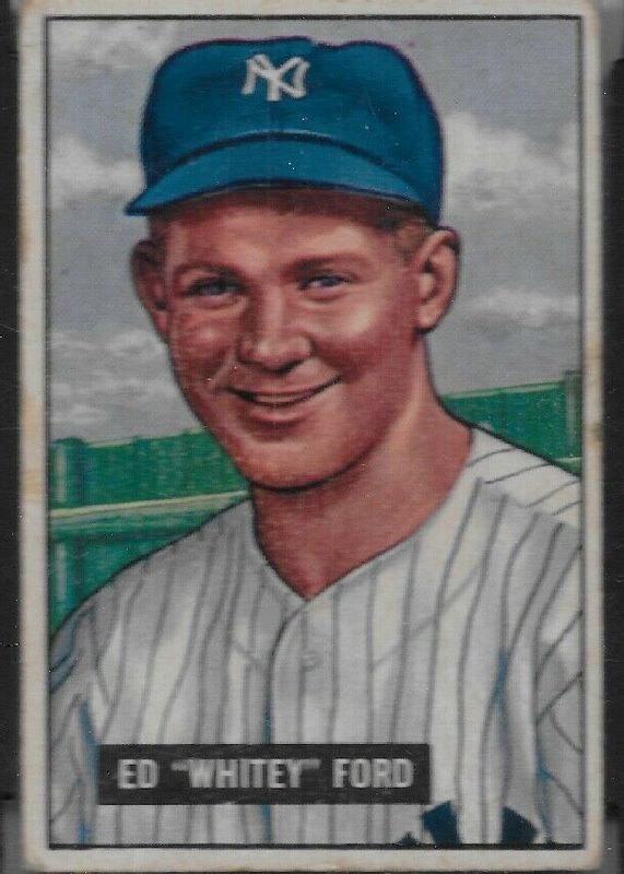 The Whitey Ford 1951 Bowman #1 Base Rookie card in PSA 7 condition has moved up $2.60K (+47.3%) in the last 30 days and was last sold for $8,100.00 .
