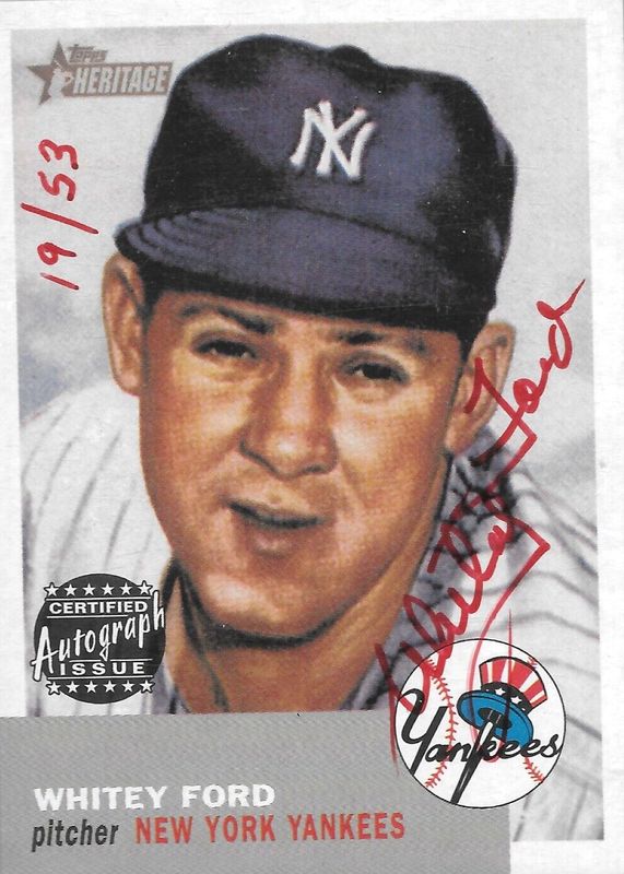 The Whitey Ford 2002 Topps Heritage #RO-WF Real One Autographs - Red Ink /53 card in Raw condition has not changed in price in the last 30 days and was last sold for $152.50 .