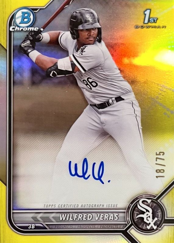 Wilfred Veras 2022 Bowman Chrome #CPA-WV Prospect Auto - Yellow Refractor /75 (1st) RAW Price Guide