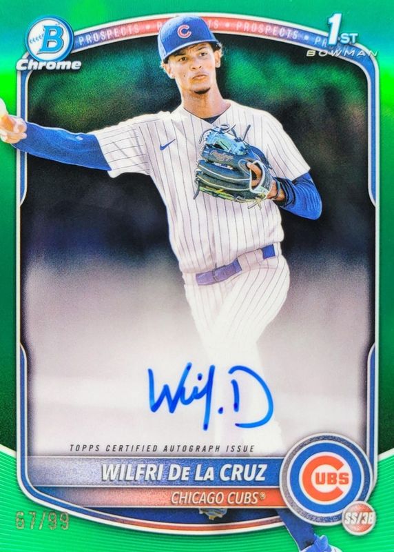 WILFRI DE LA CRUZ 2025 BOWMAN CHROME 1ST BOWMAN GREEN REFRACTOR AUTO CUBS 96/99