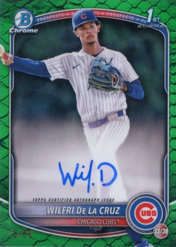 2025 Bowman Chrome Wilfri De La Cruz Green Reptilian Auto /99 Cubs 1st Bowman