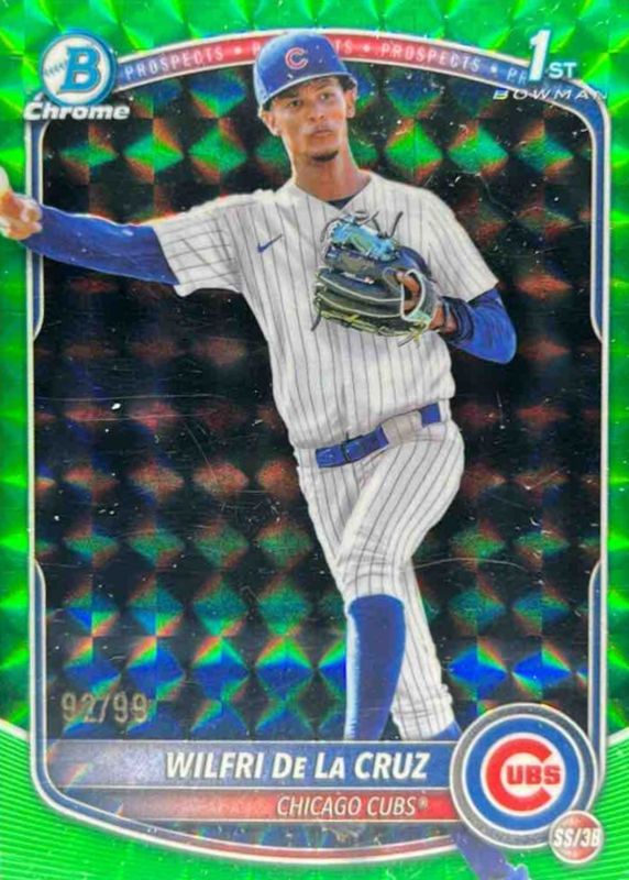 2025 Bowman Chrome Wilfri De La Cruz 1st Green Geometric Refractor /99 Cubs
