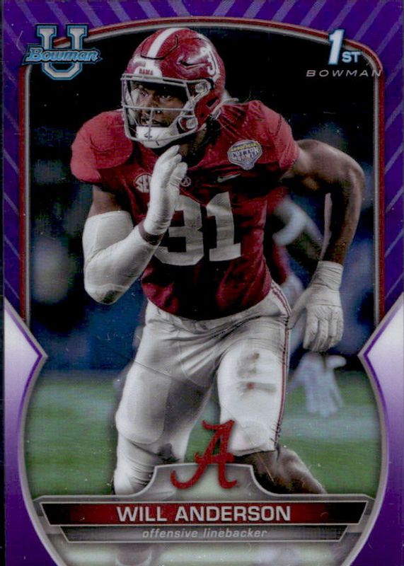 2022 Bowman Chrome U Will Anderson Purple Refractor 1st Bowman #/399 #52 Alabama