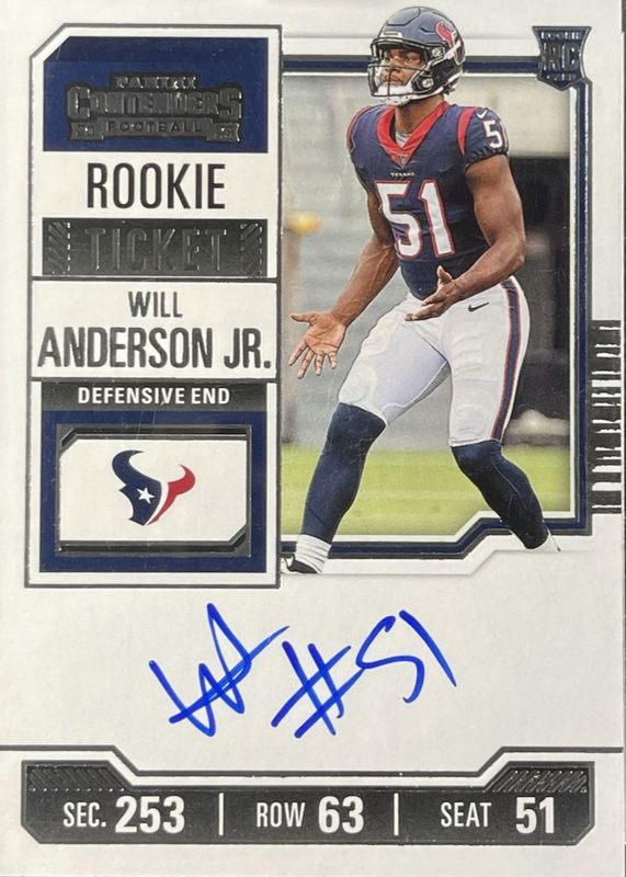 2023 Panini Contenders - Will Anderson Jr. Rookie Ticket RPS ✍️On Card Auto✍️
