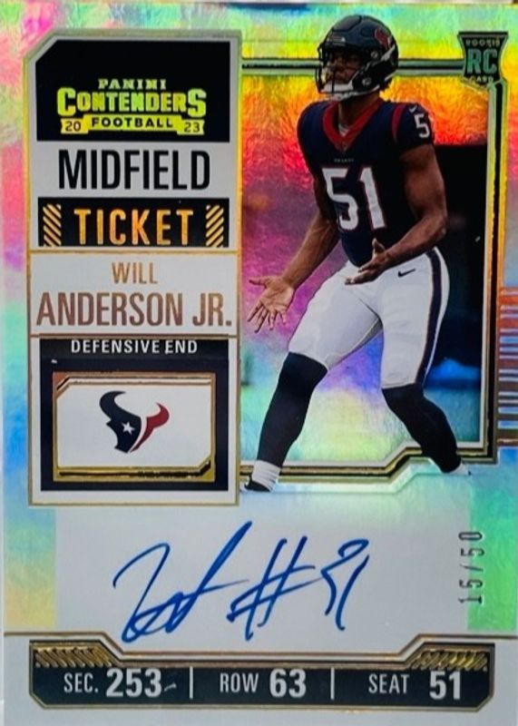 2023 Will Anderson Panini Contenders MIDFIELD Rookie Ticket #/50 Auto No.140