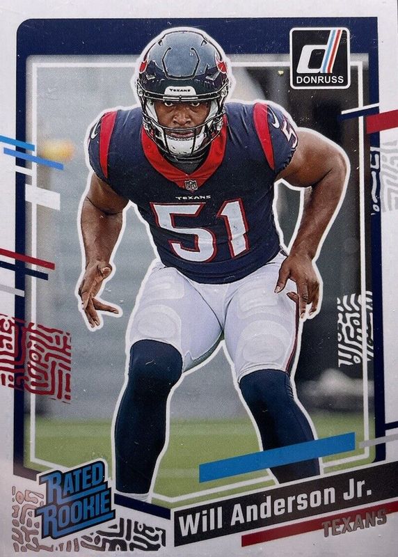 This card is 1 of 62 Will Anderson Jr.'s card variations in the 2023 Donruss set being tracked by Sports Card Investor, including Base, Canvas, Jersey Number (/51), No Name, and Optic Preview - Blue Scope.