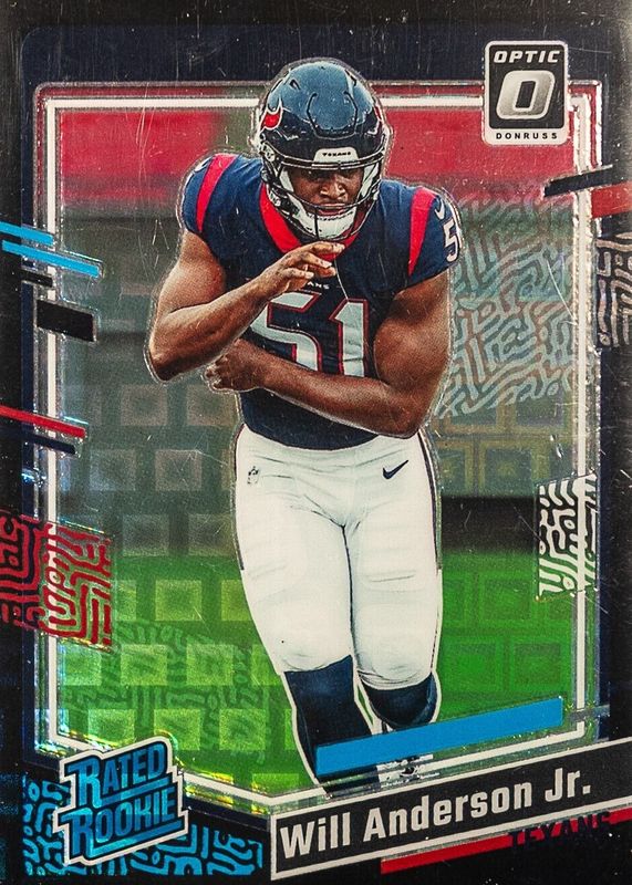 This card is 1 of 62 Will Anderson Jr.'s card variations in the 2023 Optic set being tracked by Sports Card Investor, including Base, Blue Hyper, Blue Scope, Green Hyper, and Green Velocity.