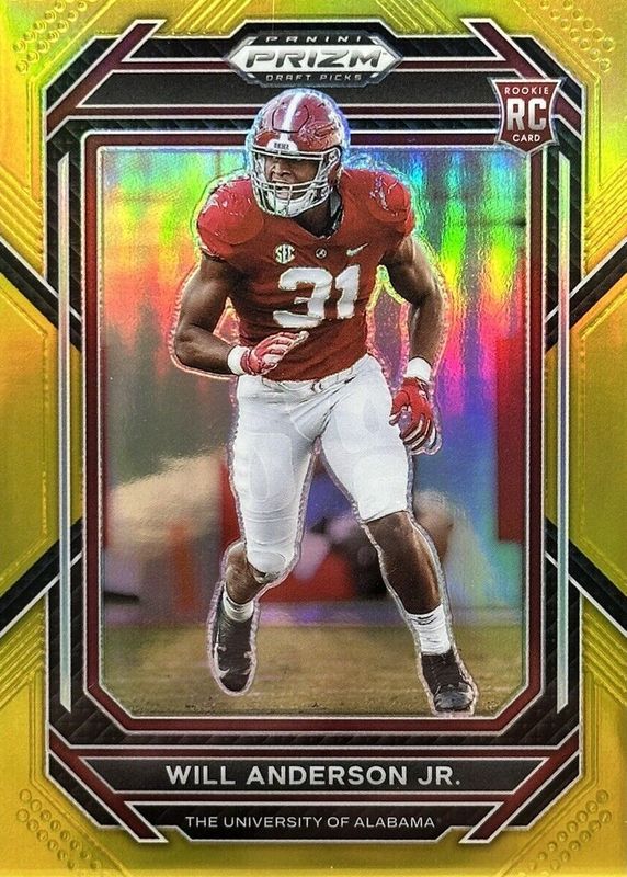 The Will Anderson Jr. 2023 Prizm Draft Picks #162 Gold /10 Rookie card in Raw condition has not changed in price in the last 30 days and was last sold for $25.78 .
