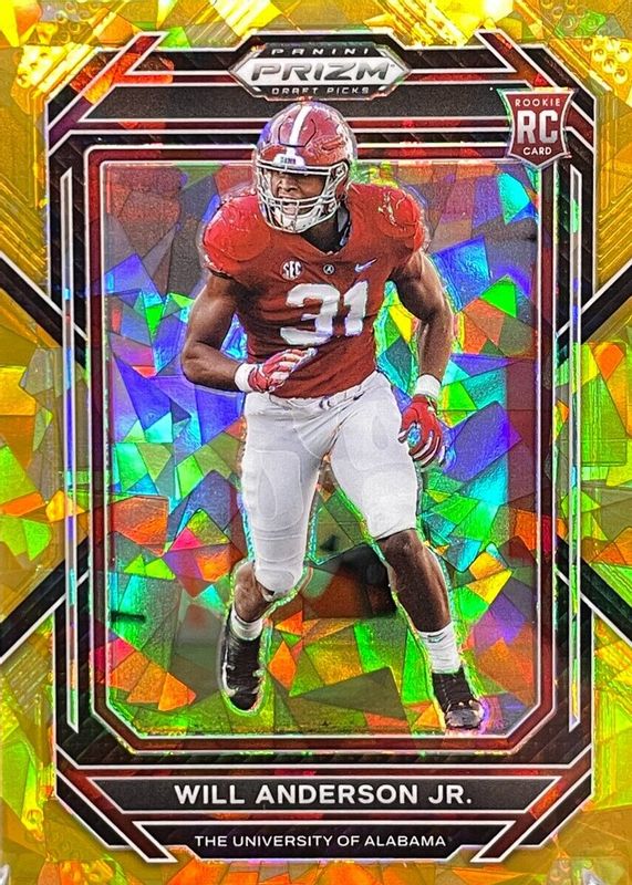 The Will Anderson Jr. 2023 Prizm Draft Picks #162 Gold Ice Rookie card in Raw condition has not changed in price in the last 30 days and was last sold for $0.99 .