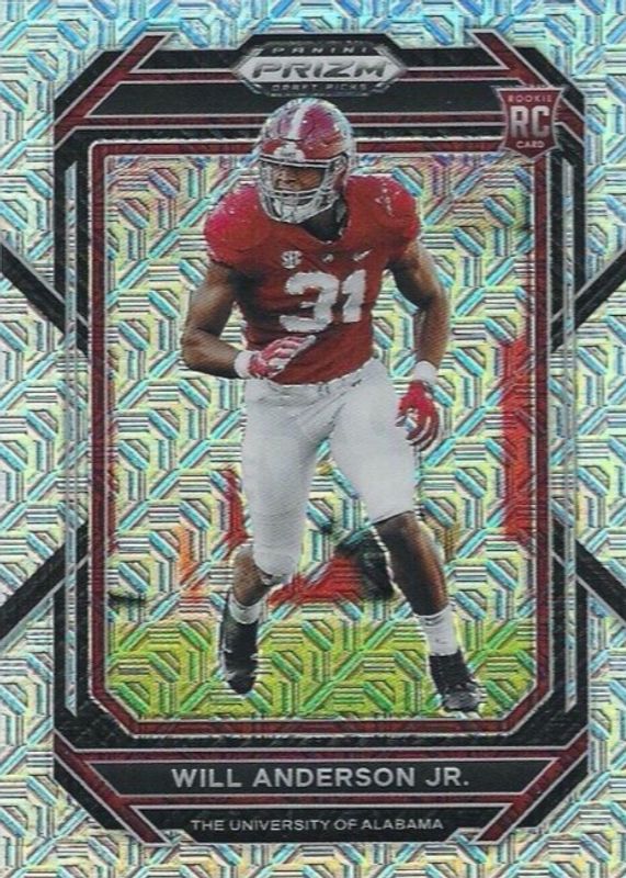 The Will Anderson Jr. 2023 Prizm Draft Picks #162 Mojo /25 Rookie card in Raw condition has not changed in price in the last 30 days and was last sold for $2.77 .