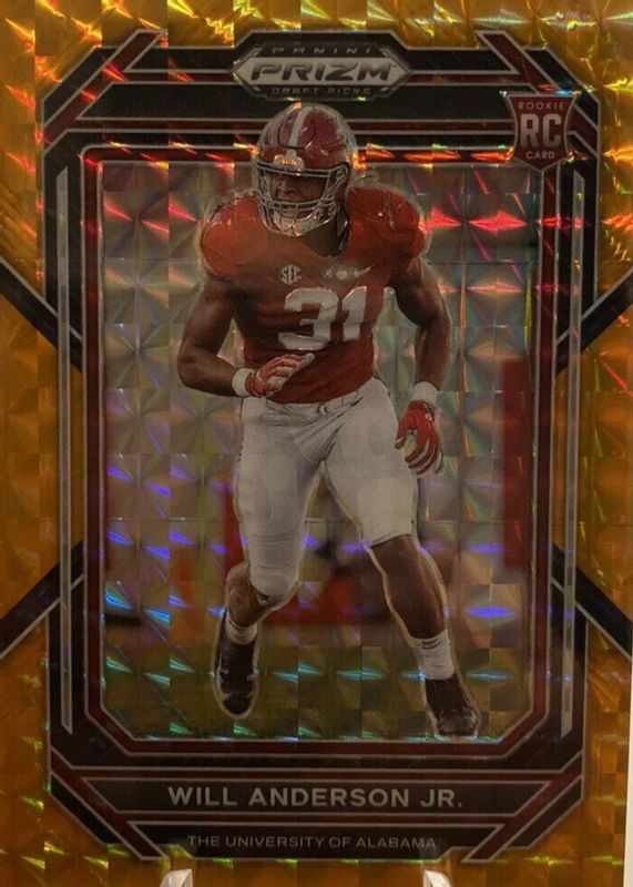The Will Anderson Jr. 2023 Prizm Draft Picks #162 Orange Finite /39 Rookie card in Raw condition has not changed in price in the last 30 days and was last sold for $15.50 .