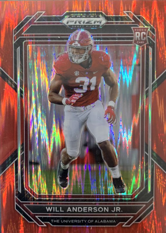 The Will Anderson Jr. 2023 Prizm Draft Picks #162 Red Flash /49 Rookie card in Raw condition has not changed in price in the last 30 days and was last sold for $20.00 .