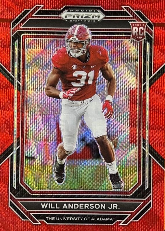 The Will Anderson Jr. 2023 Prizm Draft Picks #162 Ruby Wave Rookie card in Raw condition has not changed in price in the last 30 days and was last sold for $2.00 .