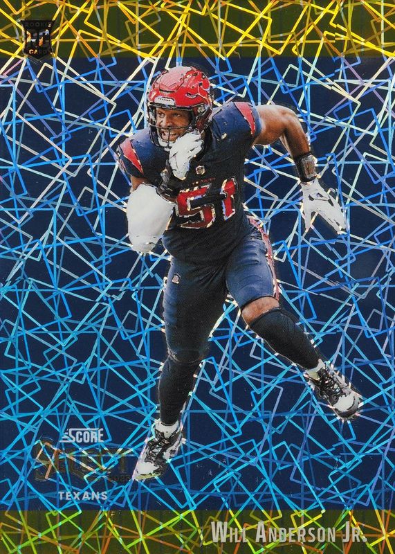 The Will Anderson Jr. 2023 Select #STW-WAN Score Select Throwback - Gold /10 Rookie card in Raw condition has not changed in price in the last 30 days and was last sold for $56.00 .