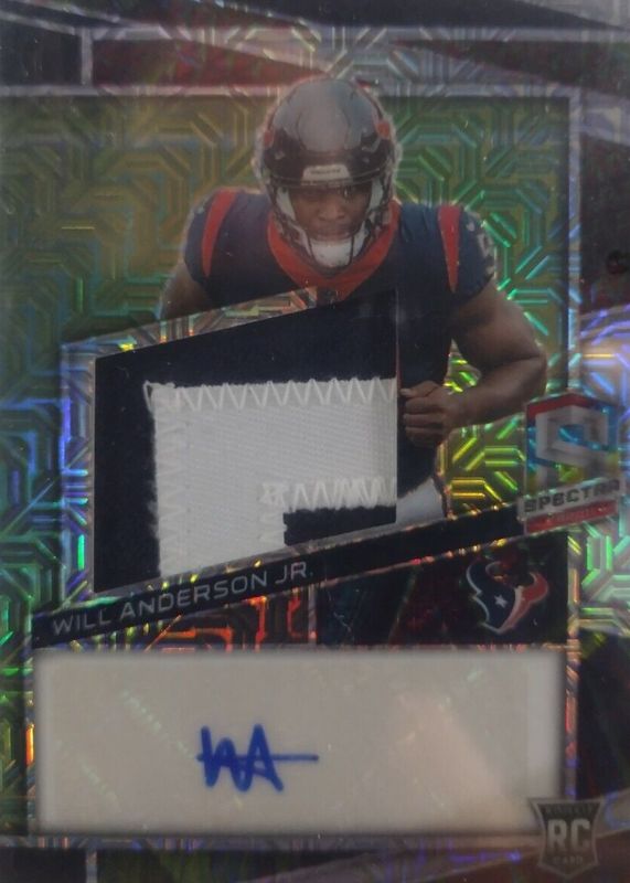 The Will Anderson Jr. 2023 Spectra #240 Rookie Patch Auto - Meta /10 card in Raw condition has not changed in price in the last 30 days and was last sold for $63.00 .