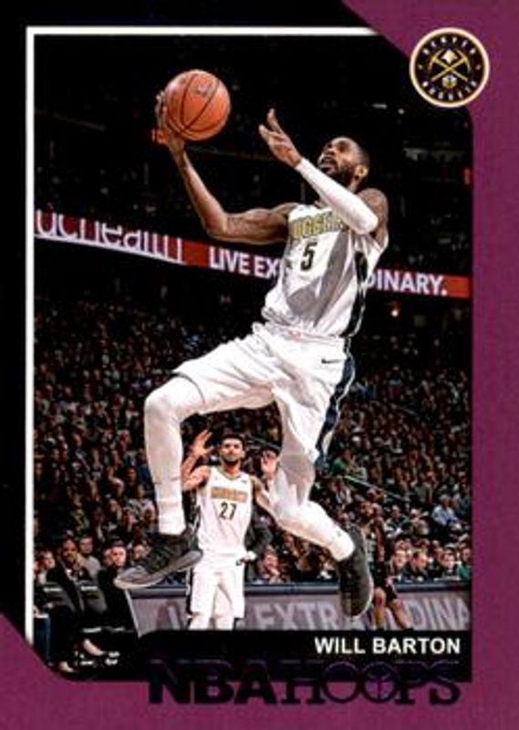 The Will Barton 2018 Hoops #32 Purple card is 1 of 18 Will Barton's card variations in the 2018 Hoops set being tracked by Sports Card Investor, including Base, Red Backs, Premium Boxed Set /199, Blue, and Teal Explosion.