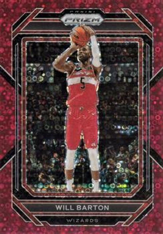 The Will Barton 2022 Prizm #194 Fast Break Red /100 card is 1 of 55 Will Barton's card variations in the 2022 Prizm set being tracked by Sports Card Investor, including Base, Blue Wave, Choice Blue Yellow Green, Fast Break, and Green.
