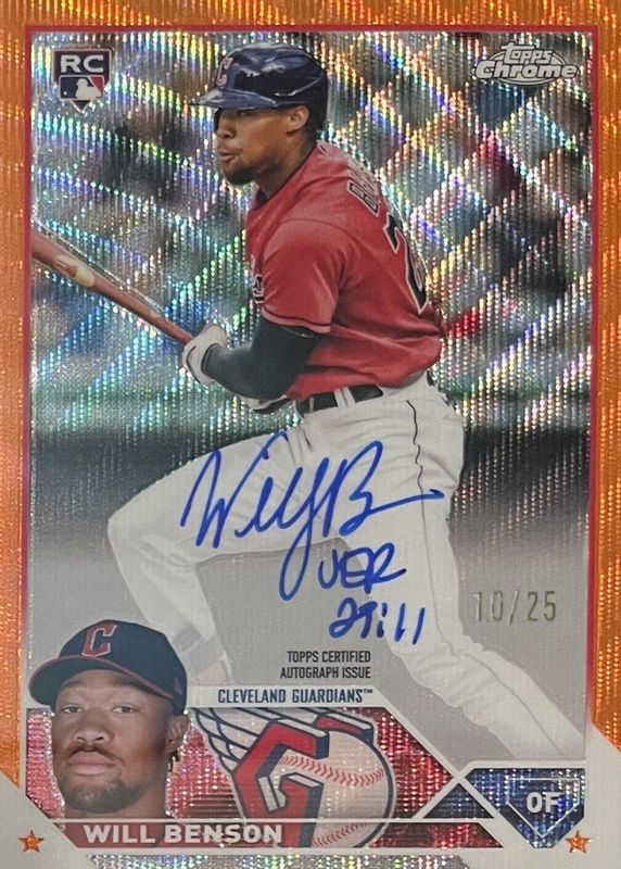 Best Prices Available For Sale of Will Benson 2023 Topps Chrome #RA-WB Rookie Autographs - Orange Wave Refractor /25
