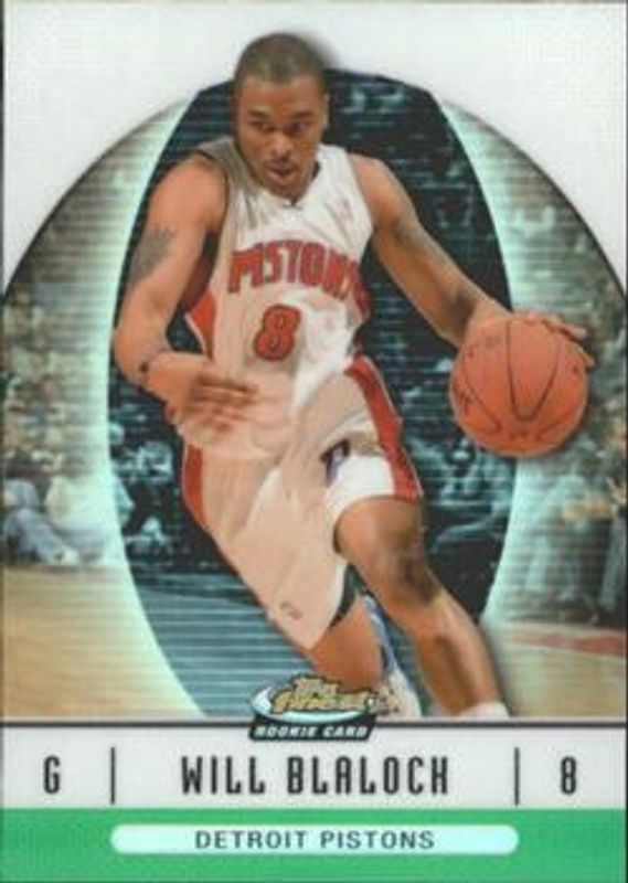 The Will Blalock 2006 Topps Finest #61 Green Refractor /199 Rookie card is 1 of 20 Will Blalock's card variations in the 2006 Topps Finest set being tracked by Sports Card Investor, including Base /539, X-Fractor /25, Printing Plates Black /1, Printing Plates Cyan /1, and Printing Plates Magenta /1.
