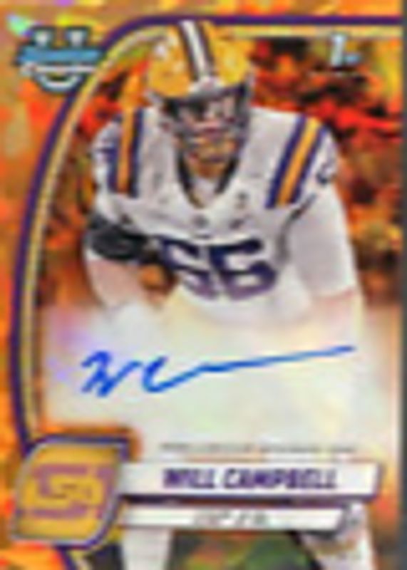 Will Campbell 2024 Bowman Chrome University Sapphire Edition #PA-WCA Prospect Auto - Orange /25 (1st) RAW