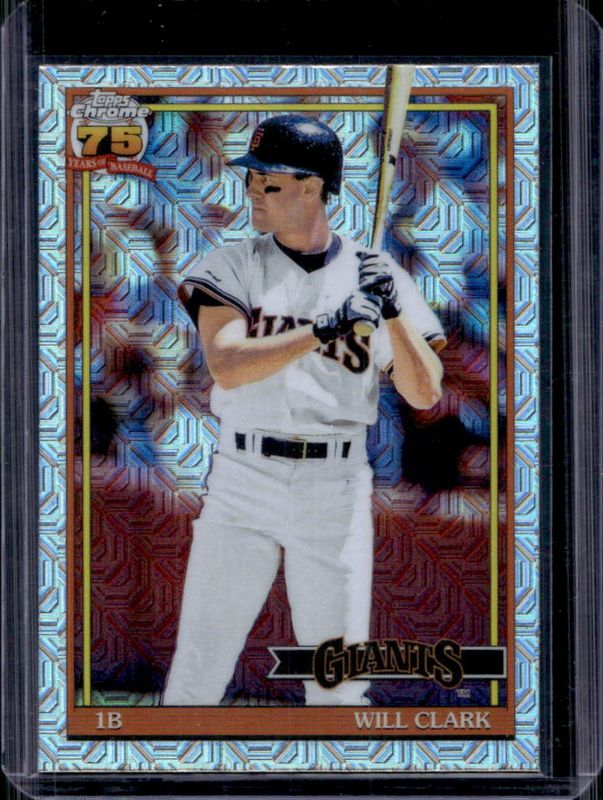 The Will Clark 2026 Topps Silver Pack #91C-96 1991 Topps Chrome - Mojo Refractor card is 1 of 16 Will Clark's card variations in the 2026 Topps Silver Pack set being tracked by Sports Card Investor, including 1991 Topps Chrome Autographs - Mojo Refractor /299, 1991 Topps Chrome - Purple Mojo Refractor /250, 1991 Topps Chrome - Aqua Mojo Refractor /199, 1991 Topps Chrome - Blue Mojo Refractor /150, and 1991 Topps Chrome - Green Mojo Refractor /99.