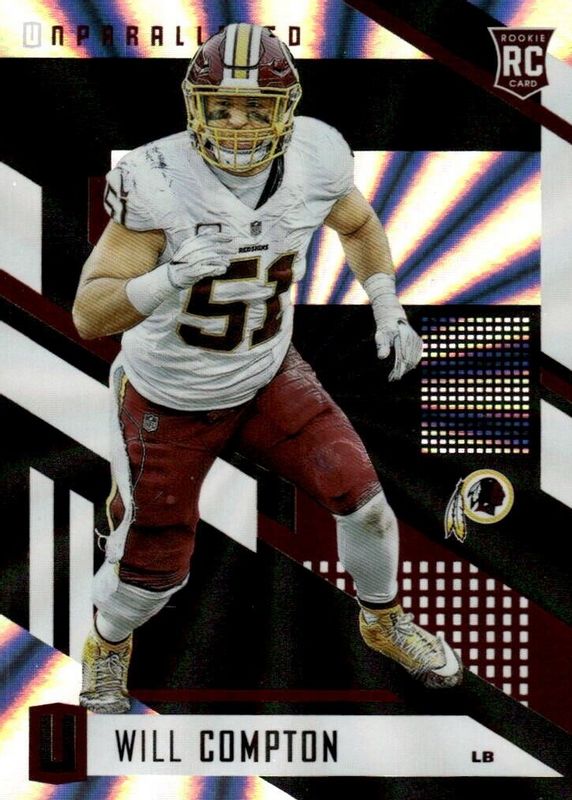 The Will Compton 2017 Unparalleled #114 Base Rookie card in Raw condition has not changed in price in the last 30 days and was last sold for $59.99 .