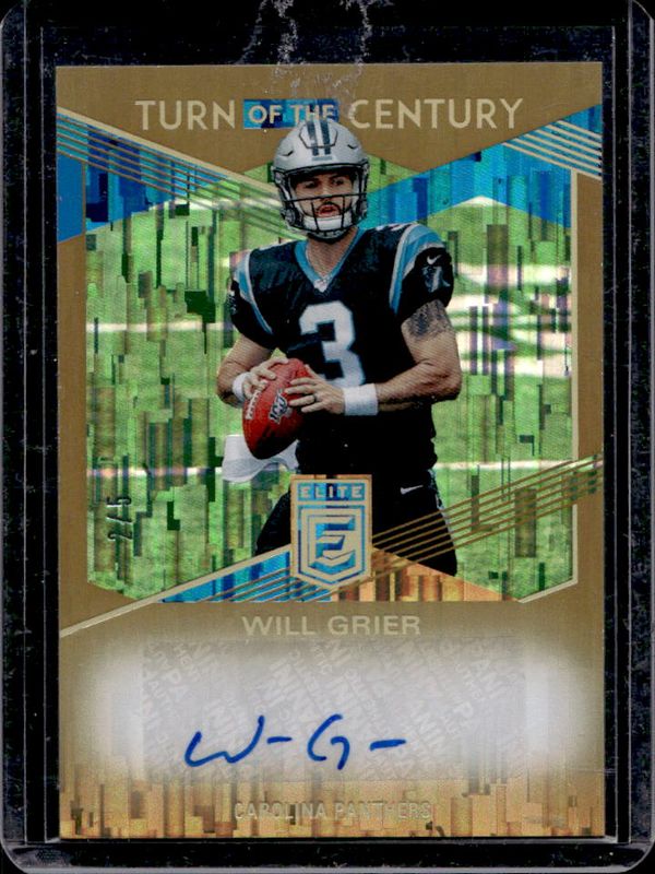 The Will Grier 2019 Elite #TC-WG2 Turn of the Century Autographs - Gold /5 Rookie card is 1 of 34 Will Grier's card variations in the 2019 Elite set being tracked by Sports Card Investor, including Green, Pink, Red /299, Purple /99, and Status /97.