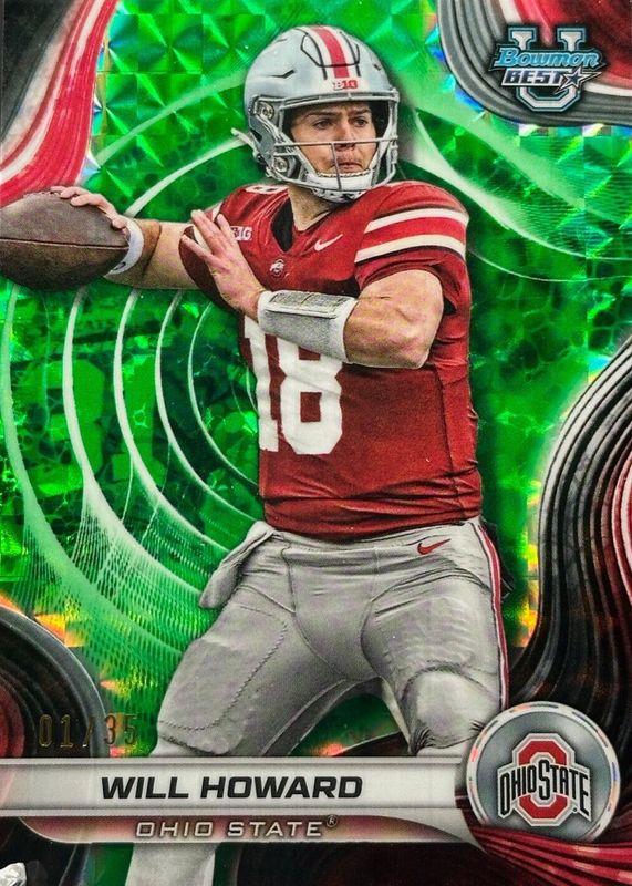Will Howard 2024 Bowman Best University #68 Lime Green Geometric Refractor /35 RAW Price Guide