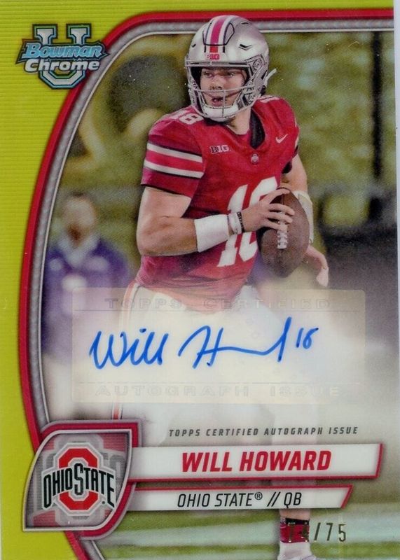 Auctions Ending Soon for Will Howard 2024 Bowman Chrome University #PA-WHO Prospect Auto - Yellow Refractor /75 RAW