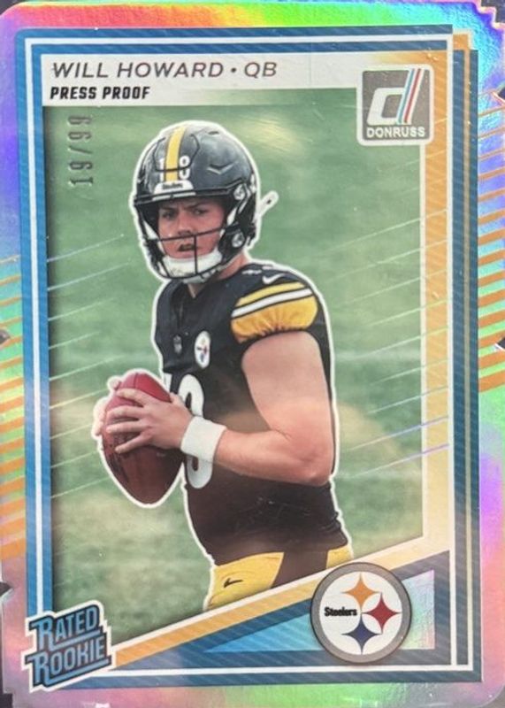 2025 Donruss Will Howard Rated Rookie Press Proof Silver Die-Cut /99 Steelers RC