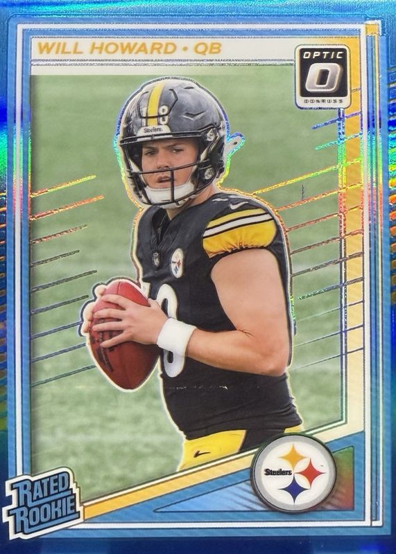 The Will Howard 2025 Optic #233 Neon Blue /399 Rookie card in Raw condition has moved up $2.99 (+18.7%) in the last 30 days and was last sold for $18.99 .