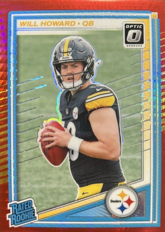 Will Howard 2025 Donruss Optic Red Hyper 233 Pittsburgh Steelers Rookie