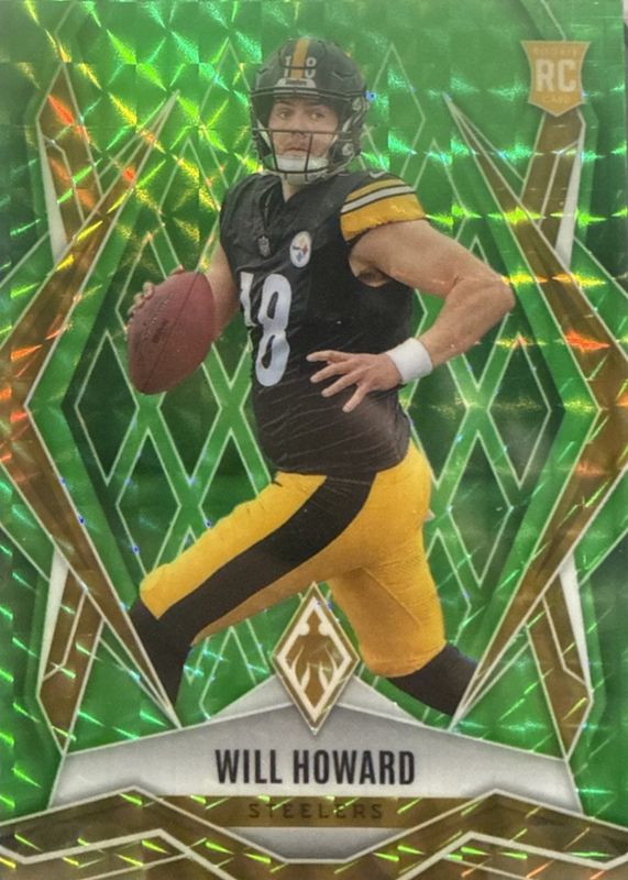 The Will Howard 2025 Phoenix #165 Lime Green Pyramids /285 Rookie card in Raw condition has not changed in price in the last 30 days and was last sold for $6.00 .