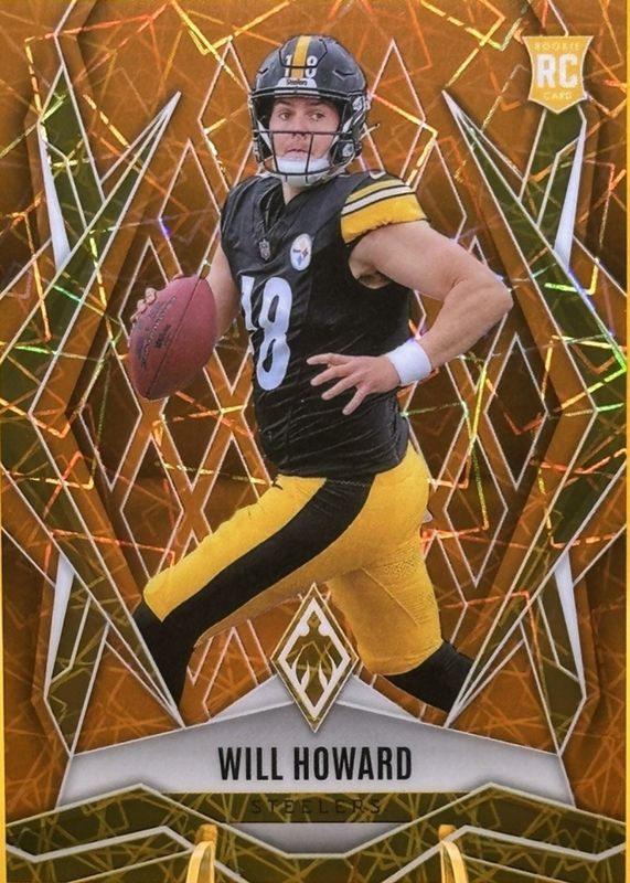 The Will Howard 2025 Phoenix #165 Orange Lazer /35 Rookie card in Raw condition has not changed in price in the last 30 days and was last sold for $32.50 .