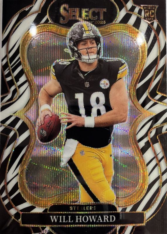 The Will Howard 2025 Select #352 Suite Level Zebra /(SSP) Rookie card in Raw condition has not changed in price in the last 30 days and was last sold for $325.00 .