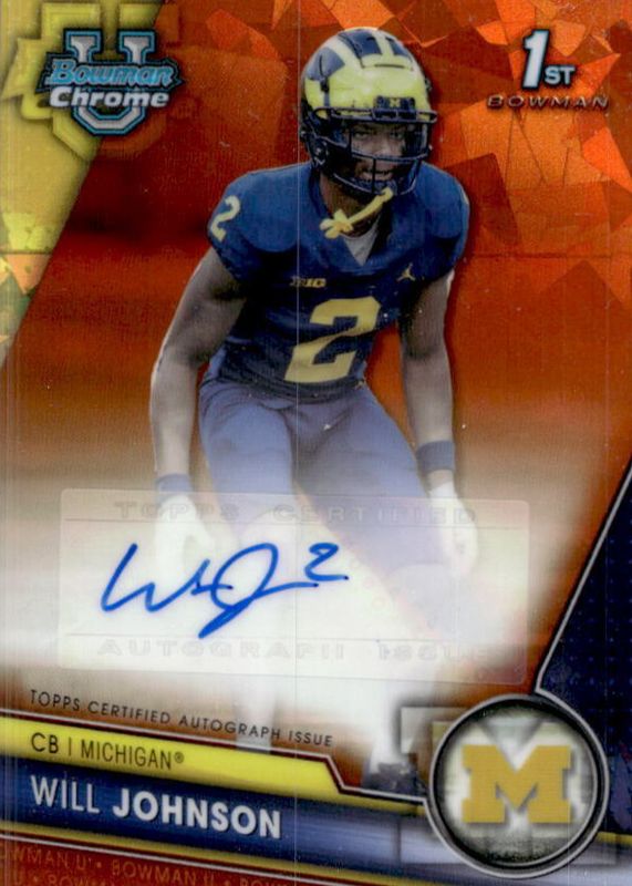 2023 Bowman Chrome U Sapphire PAWIL - Will Johnson Orange Auto /25 SSP Michigan