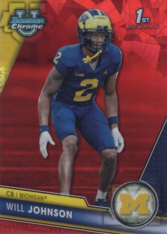 2023 Bowman Chrome University Sapphire Football Will Johnson Red 1/5 #157
