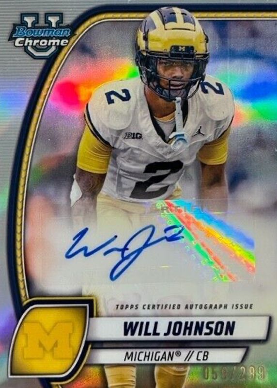 2024 Bowman Chrome U Will Johnson Prospect Auto Refractor #/299 Michigan