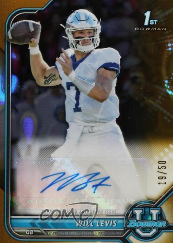 Best Prices Available For Sale of Will Levis 2021 Bowman University #BCPA-WL Chrome Prospect Auto - Gold Refractor /50 (1st)