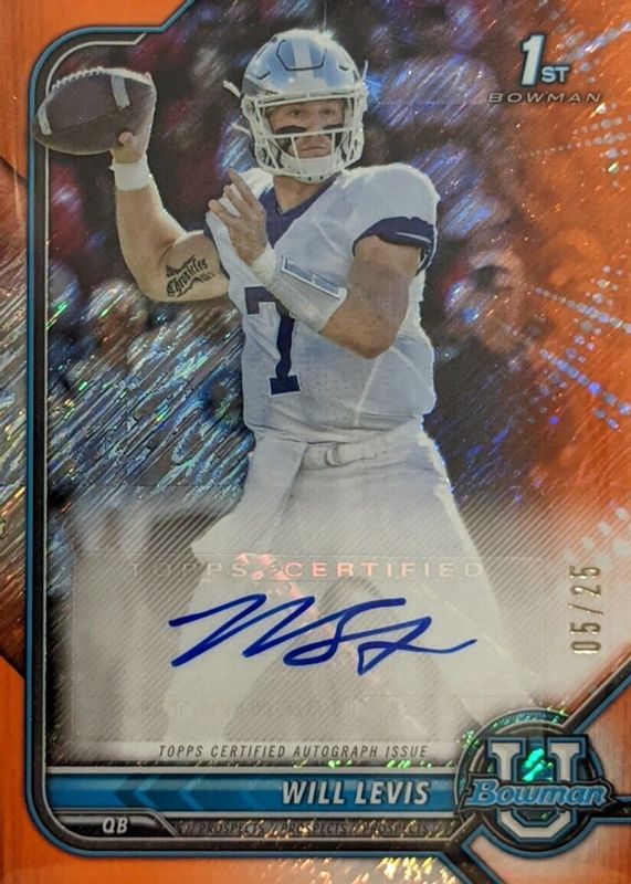 2021 Bowman U 1st Rookie WILL LEVIS Orange Shimmer Refractor AUTO /25 🟧